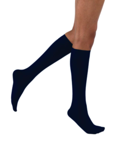 Jobst Opaque knee highs for men or women are made from smooth soft breathable fabric and are available in regular length with an open or closed toe. The exceptionally soft yarns make this sock very easy to apply.  A reciprocated and reinforced heel makes them very durable and comfortable. The 20-30 and 30-40 mmHg compression level helps improve blood flow prevent minor ankle leg and foot swelling and reduce the discomfort caused by minor varicose and spider vein