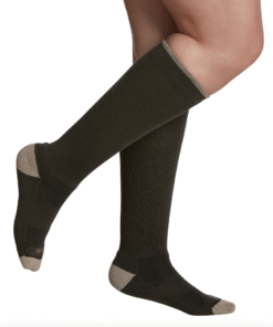Medical grade Firm 15-20mmHg compression improves circulation, provides relief against delayed onset muscle soreness, and boosts energy levels. This is an excellent sock for all outdoor activities like hiking, skiing, camping, biking, hunting. Knit from 67% Merino wool, 26% nylon, and 7% spandex.