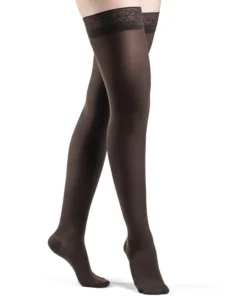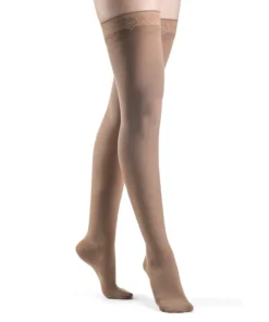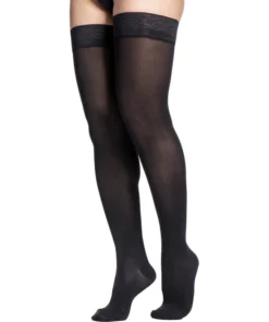 The Sigvaris Soft Opaque Women’s Thigh High 20-30 mmHg compression stockings redefine therapeutic wear. Designed for women who require moderate to firm graduated compression but refuse to sacrifice style or comfort, these thigh highs utilize Sigvaris’ innovative Soft Opaque fabric. This knit is incredibly soft against the skin, offering a breathable, high-stretch material that is easy to don and comfortable to wear for extended periods.